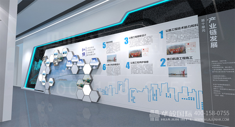 歲月流轉(zhuǎn),風雨兼程,長大在改革發(fā)展的道路上精彩跨越,邁向新的歷史起點。從當初僅承建戰(zhàn)備公路、地方公路的筑路小隊伍發(fā)展為全國橋路建設的精英團隊和善打硬仗的“王牌軍”。華竣國際將整個展廳分為四個模塊,在時間序列上以“起承轉(zhuǎn)合”為主線。從追根溯源,到激情燃燒的改革開放,長大歷經(jīng)產(chǎn)業(yè)多元化的轉(zhuǎn)型創(chuàng)新模式,致力打造和諧共榮的中國夢。