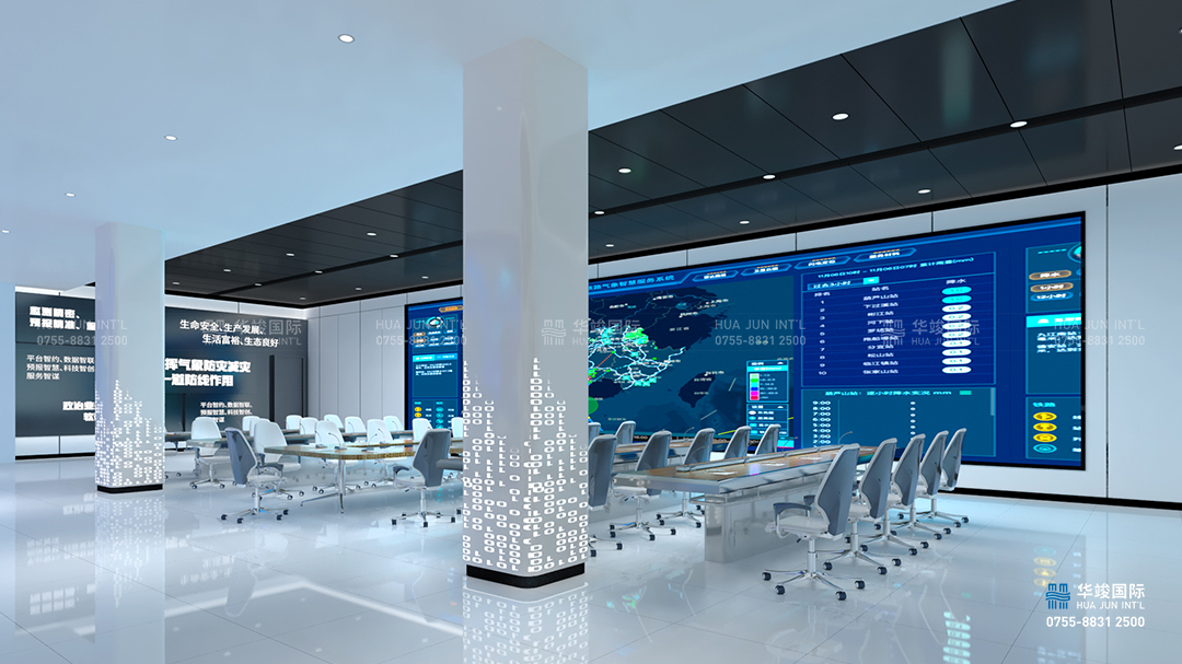 江西“智氣象”展廳項目由華竣國際執行整體設計施工,華竣國際以創新的智慧科技展廳設計理念,融合互聯網+思維,順應科技化趨勢,結合互動多媒體、數字影片、數字沙盤、虛擬現實等科技展項,打造震撼視覺的高品質科技展廳。