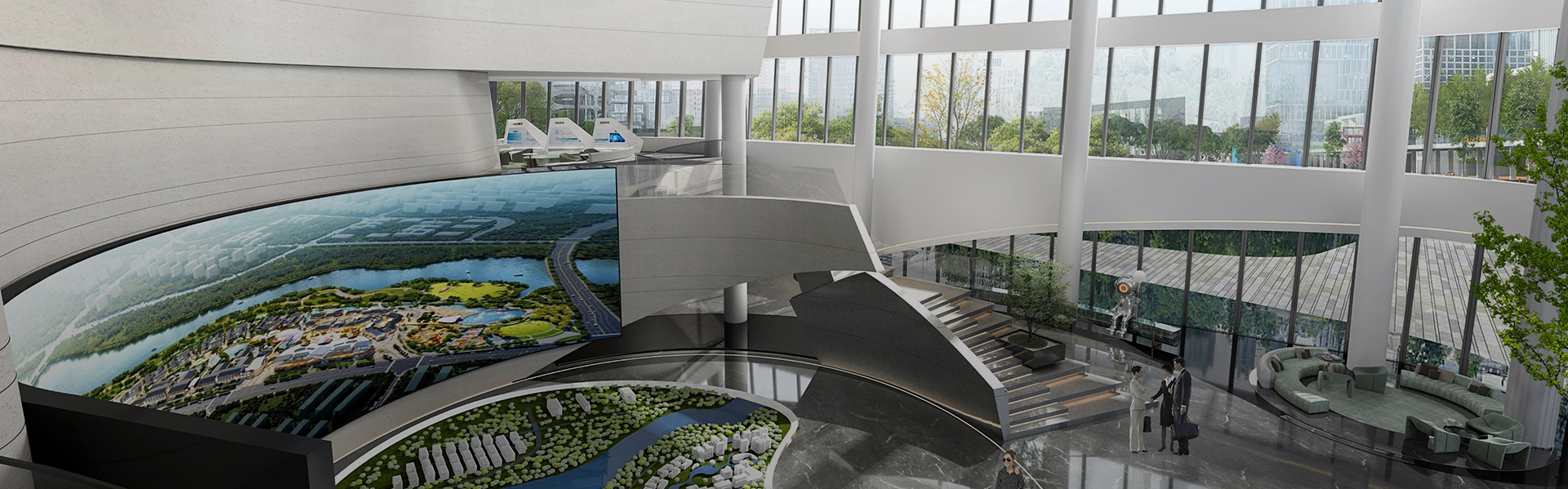 數字技術: 超6K弧形沙盤 、 CAVE影廳 、 觸摸滑軌門等