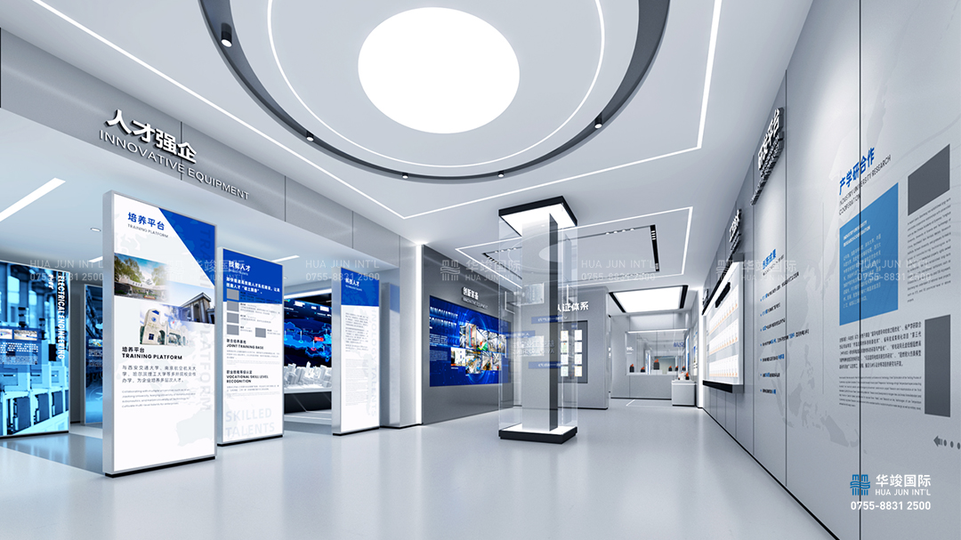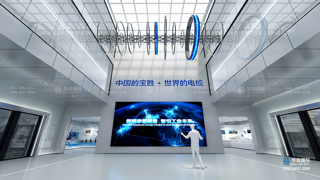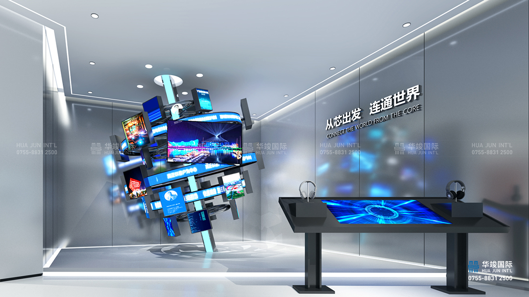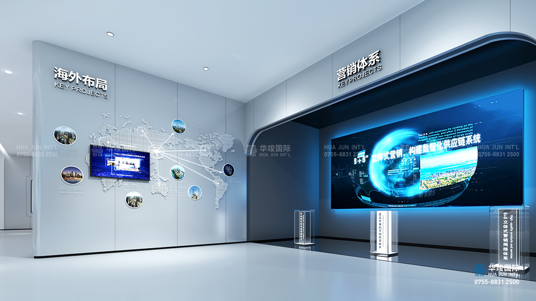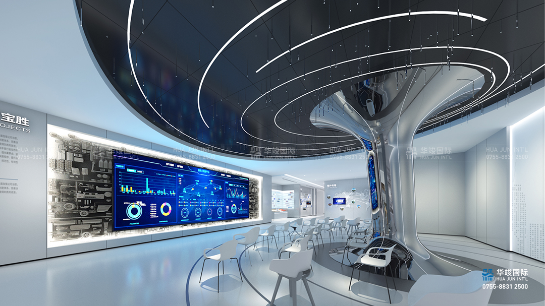 寶勝科技園區(qū)展館設計項目是由華竣出品的優(yōu)秀作品,華竣以創(chuàng)新的智慧展廳設計理念,融合互聯(lián)網(wǎng)+思維,順應科技化趨勢,結合互動多媒體、數(shù)字影片、數(shù)字沙盤、虛擬現(xiàn)實等科技展項,打造震撼視覺的高品質科技展廳。