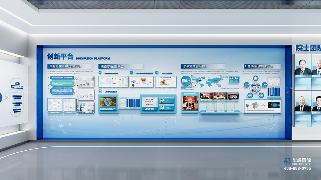 藥企的重中之重是新藥研發(fā)和核心技術(shù)。在研發(fā)成果展區(qū),陳列悅康藥業(yè)現(xiàn)有的創(chuàng)新藥和仿制藥,聚光燈打在產(chǎn)品上,在光影流動(dòng)間,專注每一種守護(hù)人類健康的藥品。通過(guò)疏密有致的專利墻,定格悅康藥業(yè)的每個(gè)榮耀時(shí)刻。