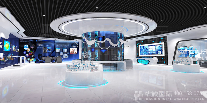 科技類展廳設計主要包括五個方面:內容策劃(系統化、故事化)、空間布局(功能劃分)、展品布置、燈光設計、創意元素裝飾,視覺效果上要求整體風格一致,宜簡不宜繁,突出層次感。