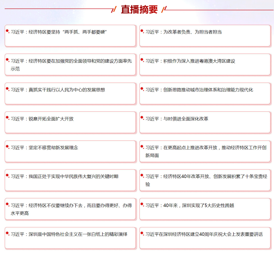 今年是深圳經(jīng)濟特區(qū)建立40周年,而今天深圳經(jīng)濟特區(qū)建立四十周年慶祝大會在廣東省深圳市隆重舉行。中共中央總書記、國家主席、中央軍委主席習近平在大會并發(fā)表了重要講話。